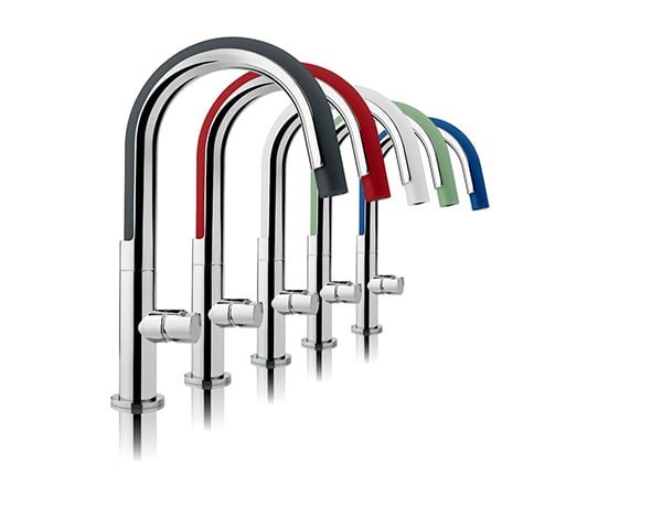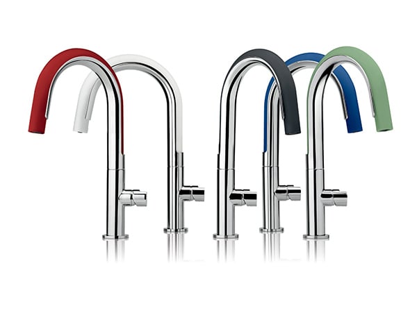 Add a touch of color and flexible fun to you kitchen space with the COOK tap! The classical sense of the kitchen spring faucet is reworked into a brightly colored, flexible, soft, silicon hose that can be twisted and turned 360° with ease. When finished using, just let go and it will automatically reposition thanks to its embedded magnets. For a fresh and modern look, it comes in five customizable color variants: sunflower gray, red chili, green sage, milky white and blue blueberry.
