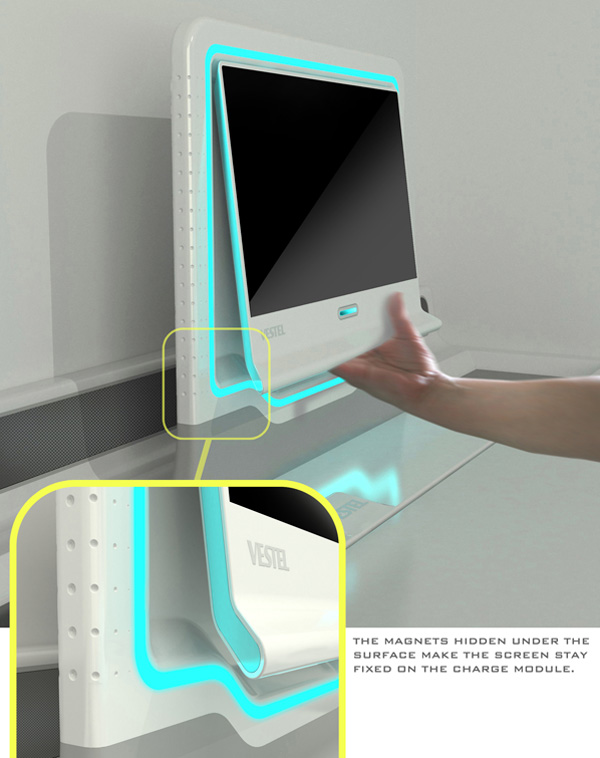 The highlight of the setup is the module called Assist. The device offers features like food information, recipes and data sharing, imaging, communication, audio system, etc. The touchscreen, which looks like a simple screen, but is in fact the main controller of the system. It stays fixed to its charging module with the help of magnets hidden under its surface.